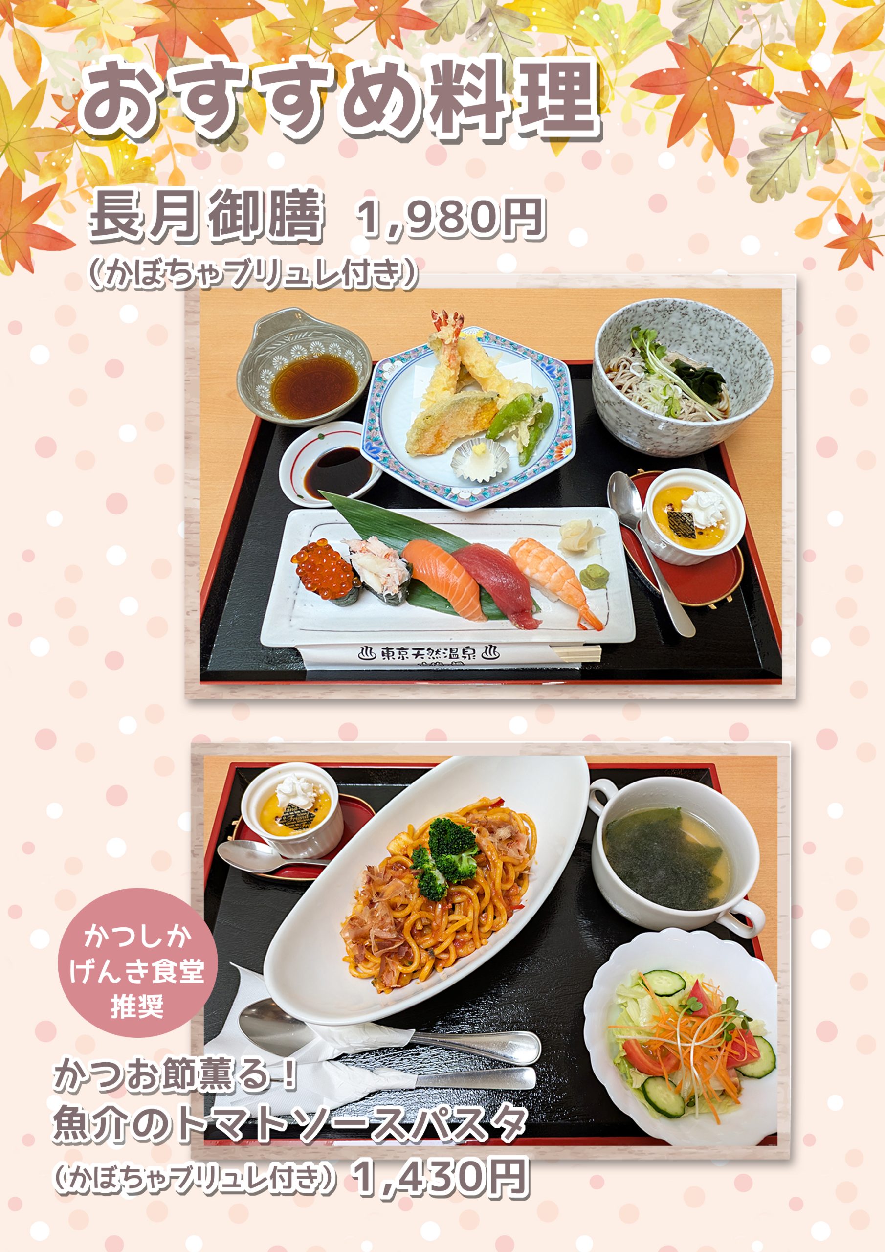 今回は『かつしかの元気食堂』おすすめ「かつお節薫る!魚介のトマトソースパスタ」をご用意させていただきました。栄養バランスが良い事はもちろん、パスタには珍しい「かつお節」の香りも食欲をそそります。どうぞ一度お召し上がりください。